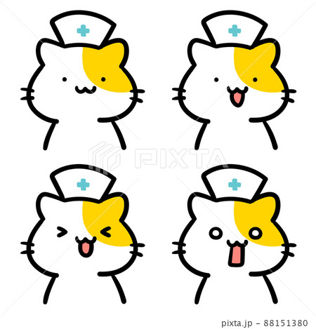 ナースキャップをかぶるかわいいねこのキャラクターの表情イラストセット