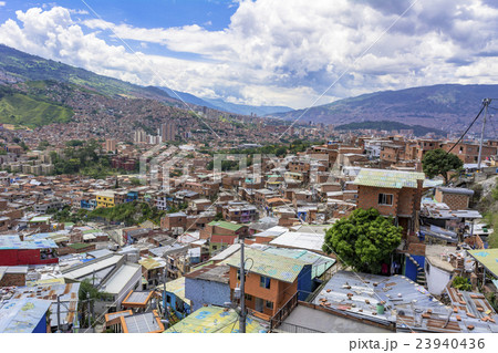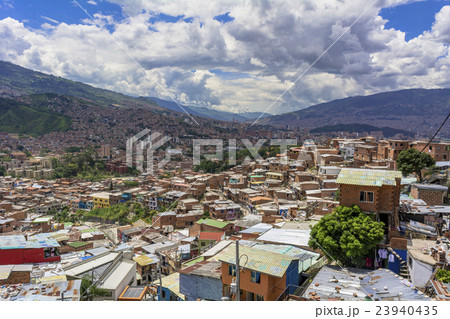 南米コロンビアの活気あふれる観光地メデジンのコミュナ13の展望台から見た景色