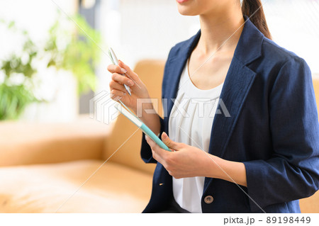 手帳・日記・メモ帳・ノート・スケジュール帳・予定帳に記入する女性・ビジネスウーマン