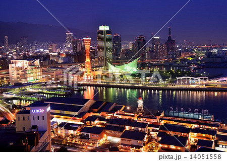 兵庫県神戸市中央区 神戸の夜景 ポートタワーとメリケンパーク