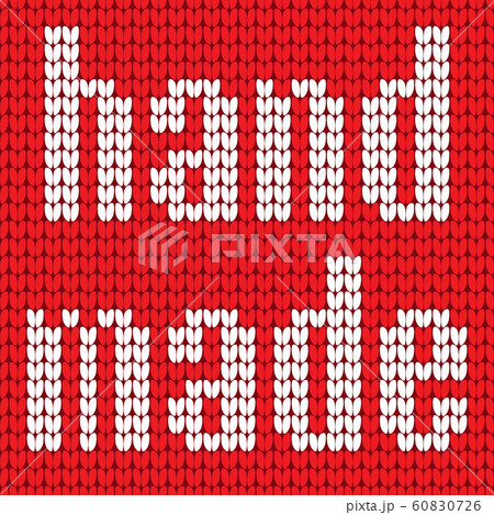 Knitted Text. Hand made. In red and white colors. Vector illustration