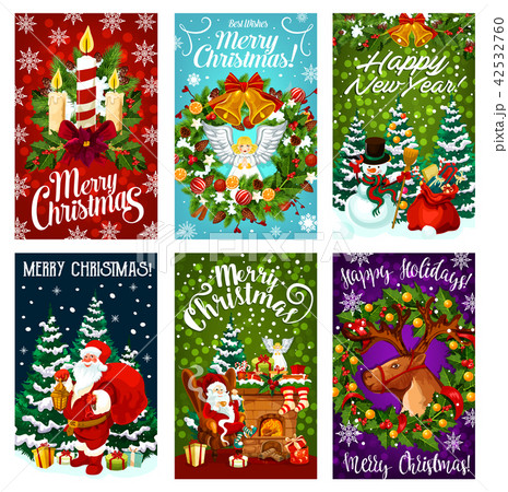 Christmas cartoon cards collection with Christmas presents and Santa Claus