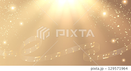 金色の背景に流れる音符 エレガントな音楽イメージの背景素材