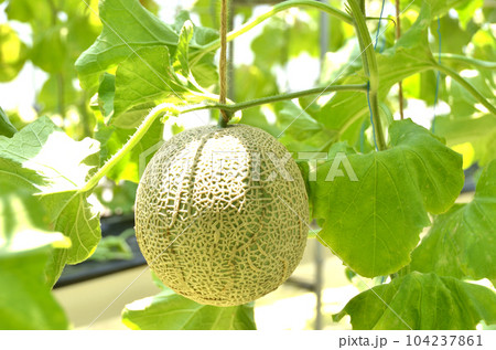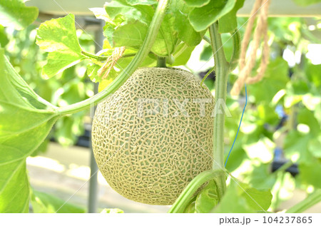 ビニールハウスの中のマスクメロン・実っているマスクメロン・ハウスメロン