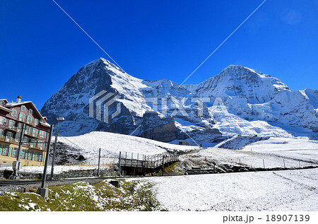 スイス クライネ・シャイデック駅とアイガー メンヒ ユングフラウ