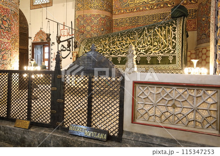 トルコ古都コンヤのメヴラーナ博物館内のメヴラーナ・ルーミーの霊廟