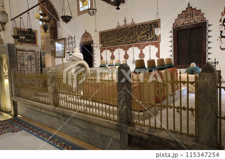 トルコの古都コンヤのメヴラーナ博物館内のメヴラーナ一族の霊廟