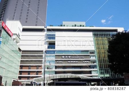 日本の横浜都市景観 横浜駅やJR横浜タワーなどを望む