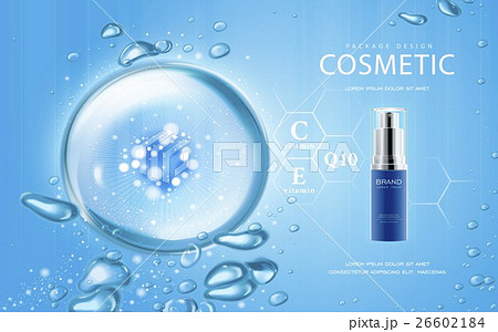 Blue water ball on an isolated white background. skin care with water droplets is absorbed into the skin and cells. use ads, lotions, serums, creams. medical and scientific concepts. vector.
