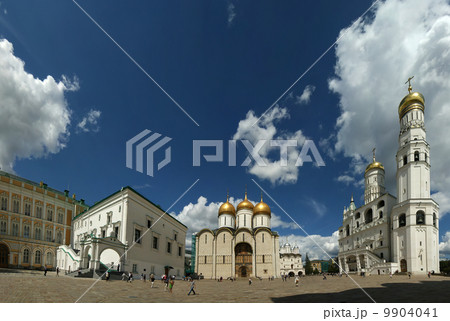 Cathedral Square or Sobornaya Square, Moscow Kremlin (panorama), Russia. UNESCO World Heritage Site
