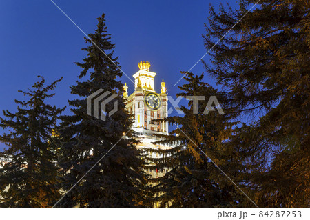 The Main building of Lomonosov Moscow State University on Sparrow Hills (autumn evening). It is the highest-ranking Russian educational institution. Russia