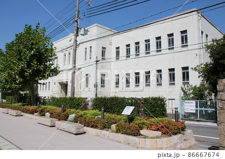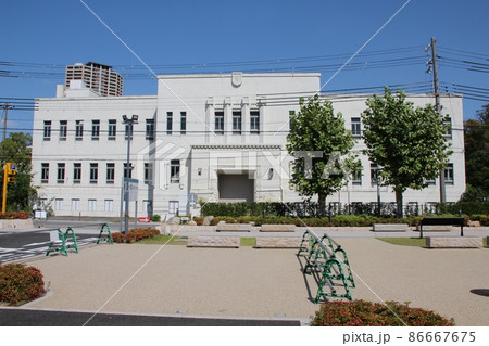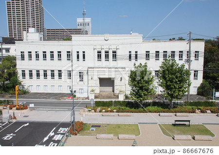 青空に映える白壁が美しい旧尼崎警察署の全景 兵庫県尼崎市