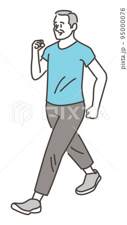ウォーキング(散歩)するシニア男性の全身ベクターイラスト