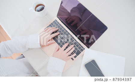 PC女性キーボードと手元