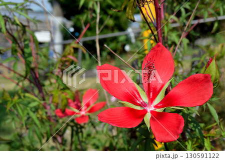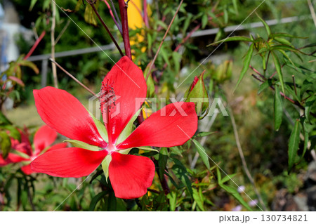 真っ赤なモミジアオイの花