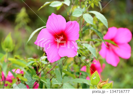 咲き誇るモミジアオイの花