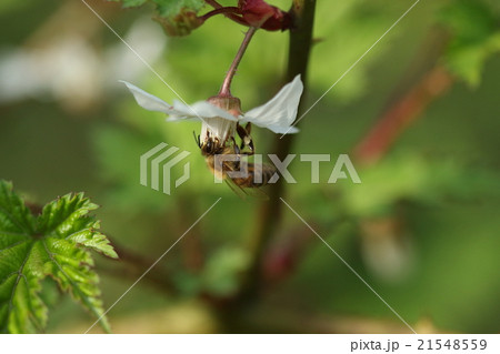 木イチゴの花とハチ