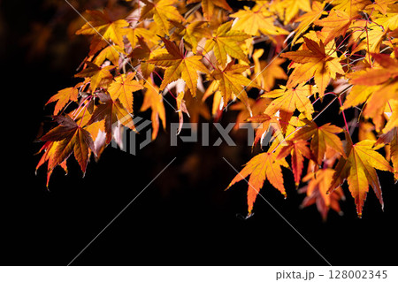 【紅葉素材】黒バックで撮影する紅葉したもみじの葉【長野県】