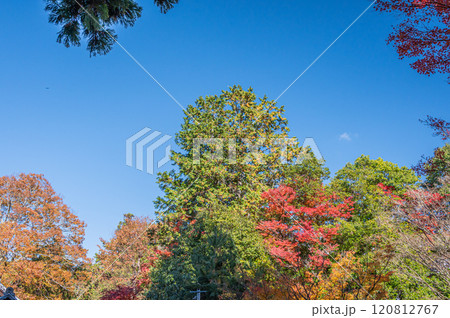 大津市坂本 青空に映える晩秋の木々