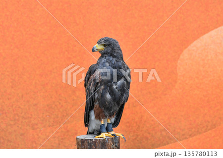 英名はハリスホークと言われるモモアカノスリの精悍な顔立ち