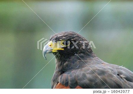 英名はハリスホークと言われるモモアカノスリの精悍な顔立ち