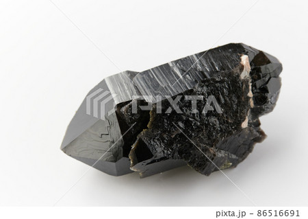 Macro mineral stone smoky quartz, rauchtopaz on a white background