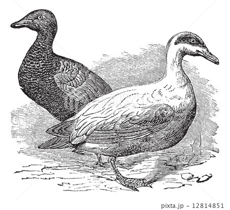 Common Eider or Somateria mollissima, vintage engraving