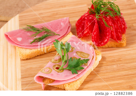 Sandwiches with salami, bacon and mortadella