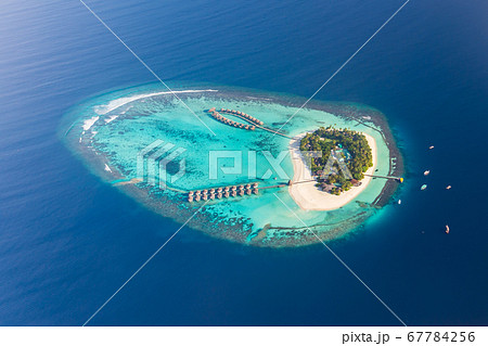 風景 (モルディブ モルジブ サンゴ 空撮 珊瑚 リゾート 水上コテージ)