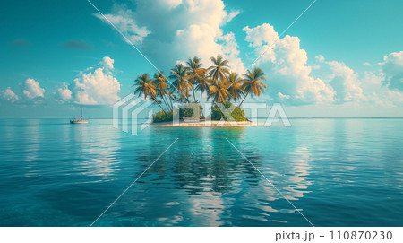 南洋の孤島とヨットと青い海と青い空:精緻CG