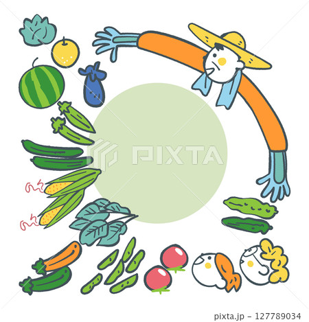 夏野菜の収穫を楽しむ子供たちと農家さん セットのストックイラスト素材