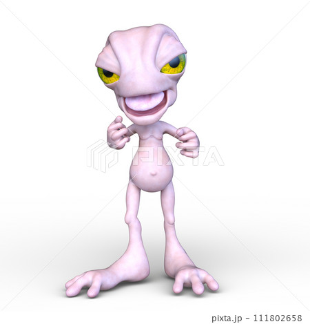Small cute alien creature isolated in front of monochrome background, otherness and outsider