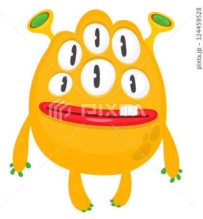 Funny cartoon monster character. Illustration of cute and happy alien creature for Halloween party decoration or package design. Vector isolated