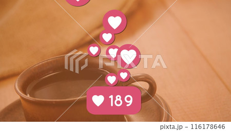 Image of hearts over cup of coffee