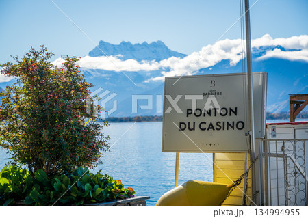 レマン湖畔にあるカジノ桟橋の看板。モントルー, ヴォー州, スイス