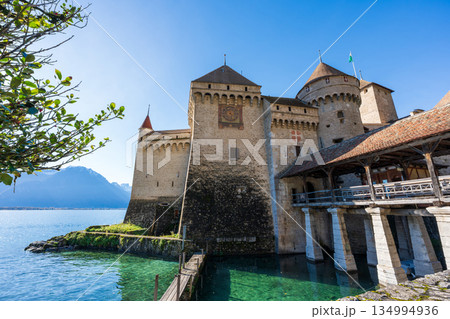 View of Chillon Castle on Lake Geneva