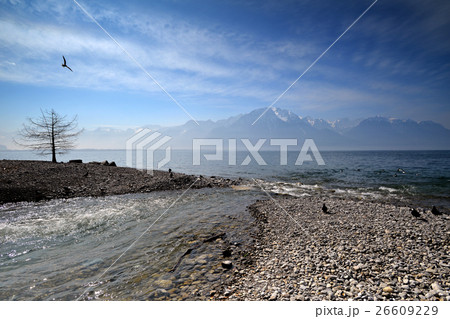 Beautiful views at Alps on Lake Geneva at Montreux, Switzerland