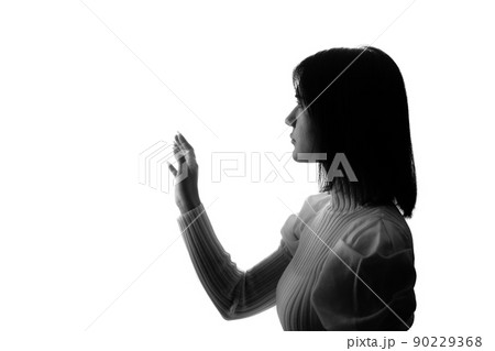 両手をかざす女性 手作業で精密に切り抜いた背景透過写真PNG