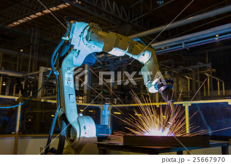 Robot welding assembly part in factory