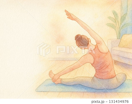 朝の軽ストレッチ・自宅マットで始めるワークアウト(水彩)