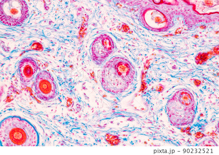 Hair growth. Cross section of a human skin with Hair follicles.