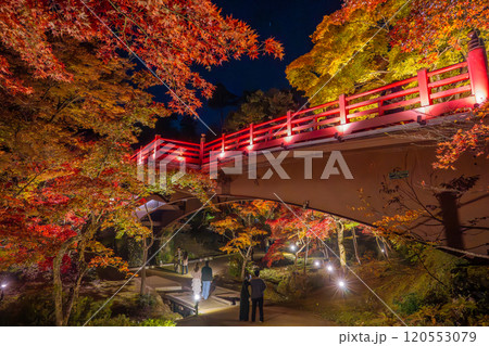 新潟・弥彦公園 ライトアップされたもみじ谷の観月橋