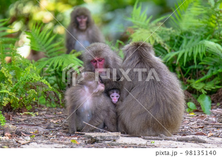 屋久島世界自然遺産の猿(5月)くつろぐヤクザルの親子