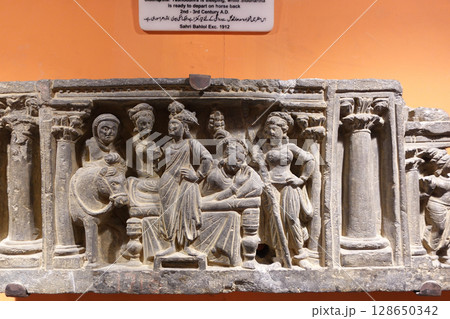 ガンダーラの要衝都市パキスタンのペシャワールにある博物館に展示されるシッダルタ王子の出城前夜の彫刻