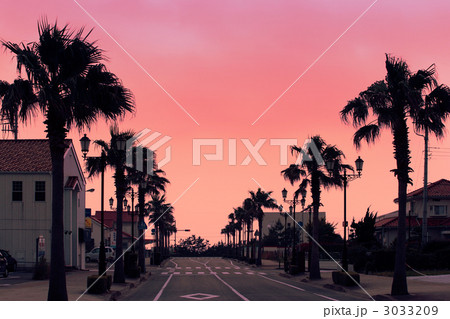 ヤシ並木 街路樹 夕焼け