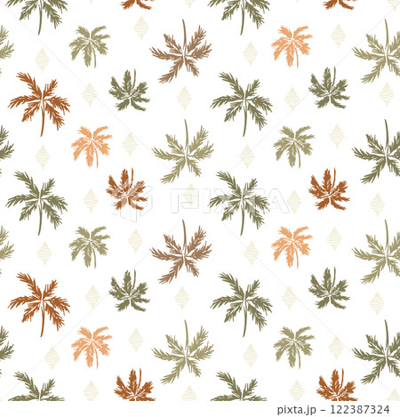 Hand drawn tropical palm tree seamless pattern. Green and brown coconut. Vector summer beach print