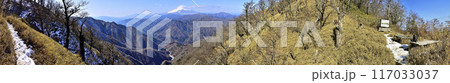 丹沢の熊笹ノ峰 ヤタ尾根出合のパノラマ写真 富士山を望む尾根道
