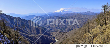 丹沢の熊笹ノ峰 ヤタ尾根出合からのパノラマ写真 富士山と西丹沢を望む