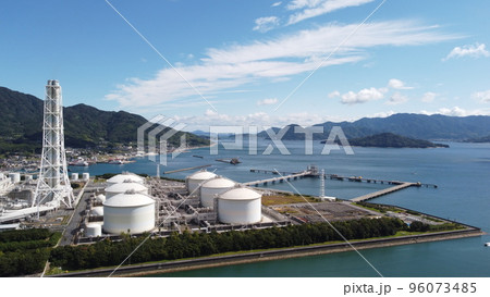火力発電所『ドローン空撮』山口県柳井市の街並みと空と雲 SDGs co2削減!