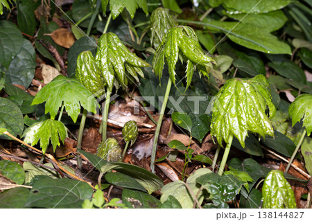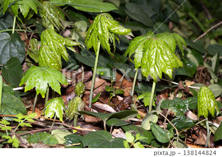 破傘ヤブレガサ 兎の子供がさす傘で「兎児傘」とも・・・